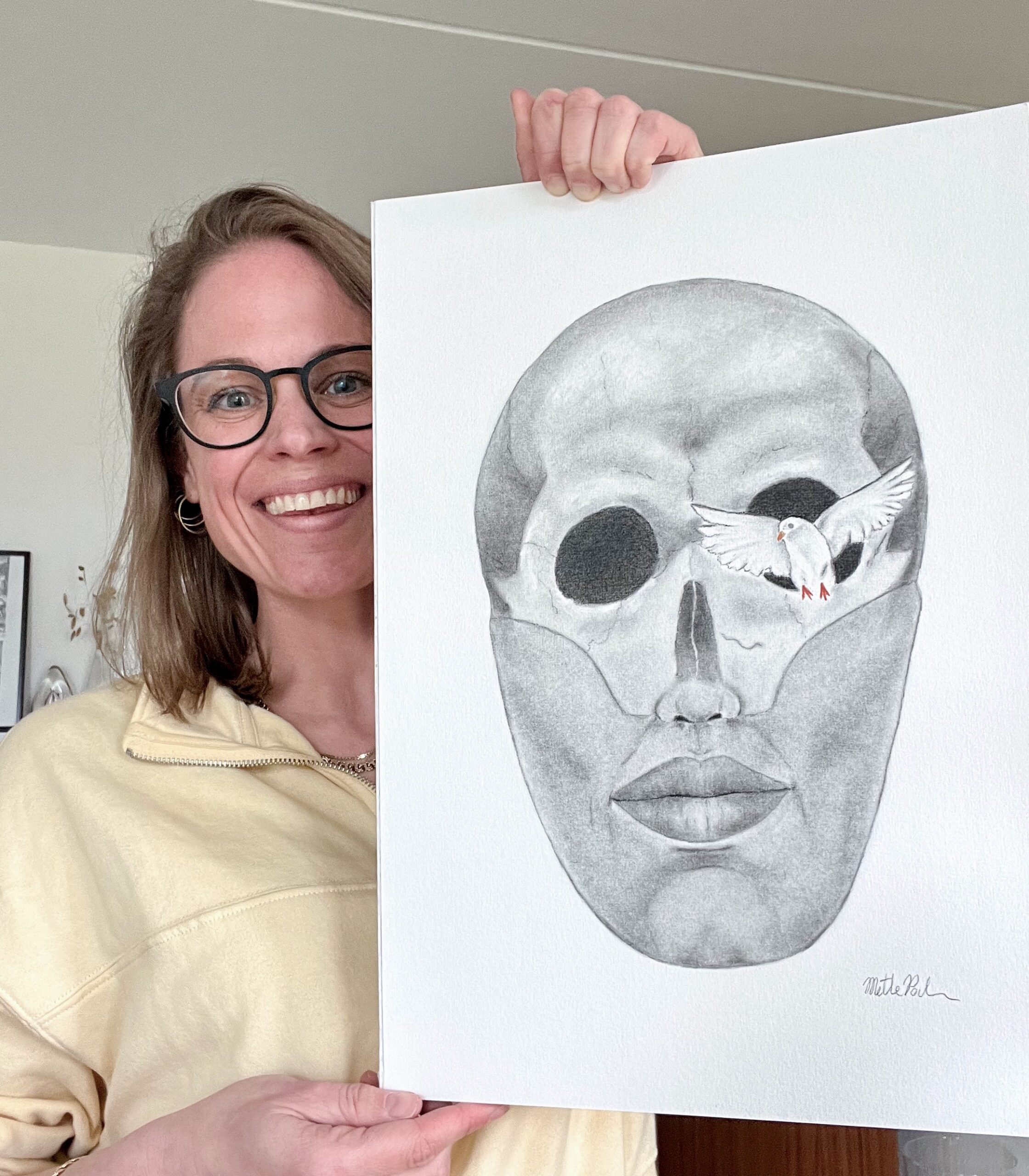 Fuglen i værket bryder ud af mørket, ikke fordi alt er let, men fordi den er klar. Klar til at give slip, klar til at flyve, klar til at finde fred i det, der er. Måske længes du også efter den frihed. Ikke den, der larmer – men den, der lander stille i brystet.