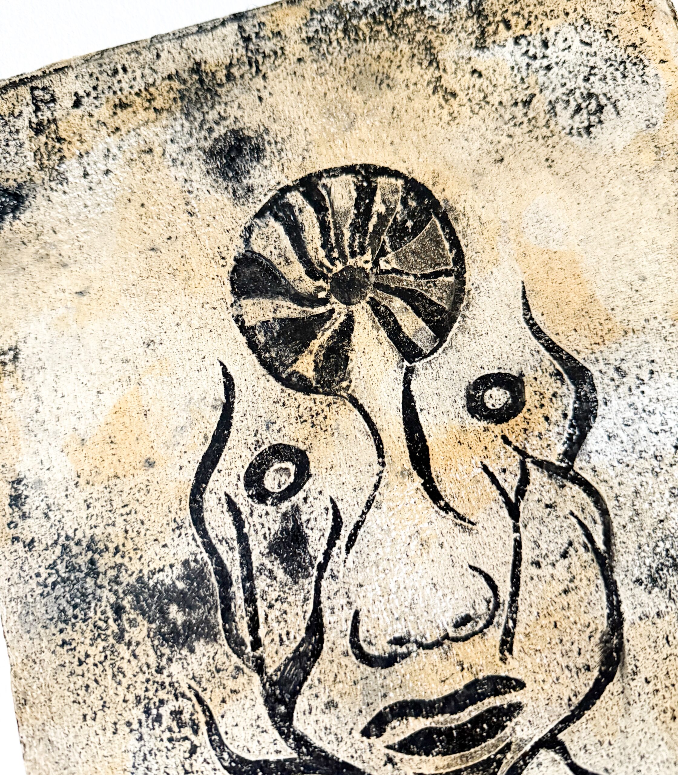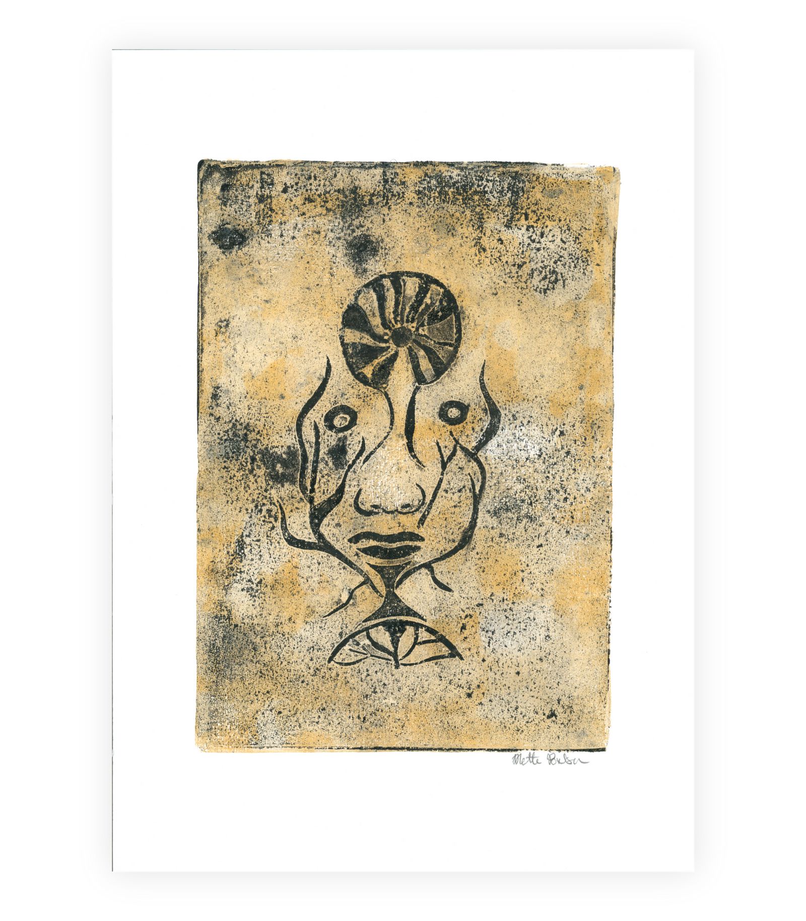 Dette unikke geltryk er et symbol på transformation, vækst og lys. Det abstrakte motiv af et ansigt og en cirkulær form, inviterer værket dig til at reflektere over livets cyklus og de muligheder, der opstår gennem forandring.